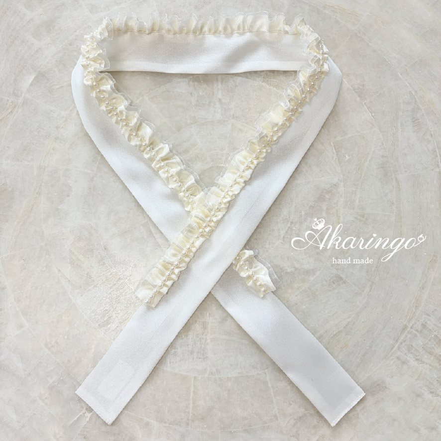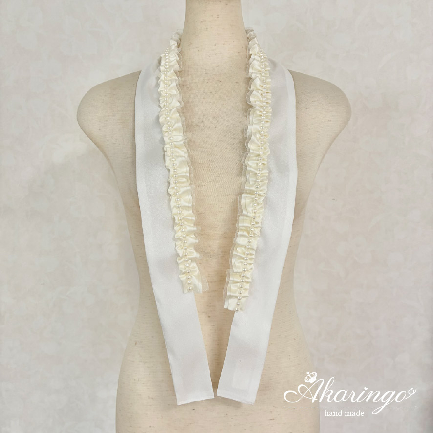 伊達衿 3重フリル&パールの重ね襟 オフホワイト
