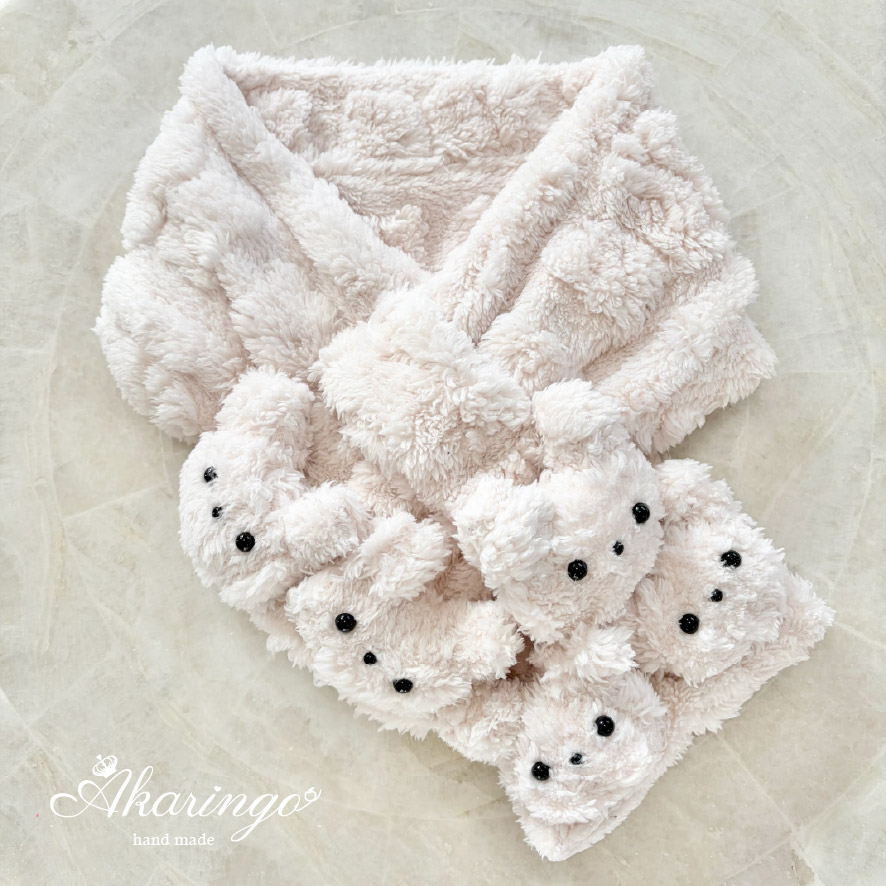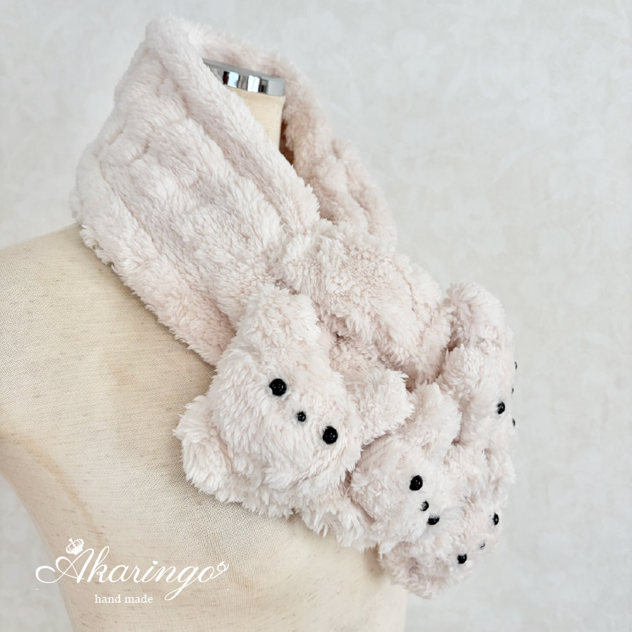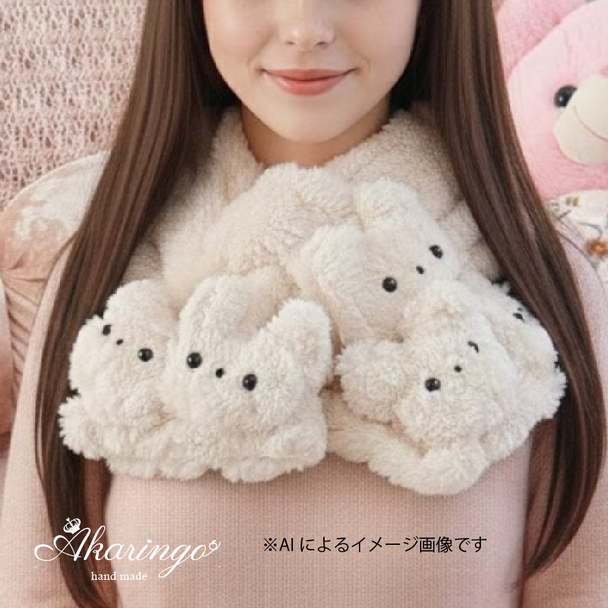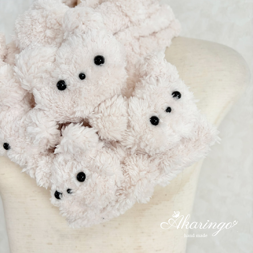 - デコレーションケーキ風 手編みニットの小物入れ 白×ピンク リボン メイクブラシスタンド メガネスタンド ペン立て