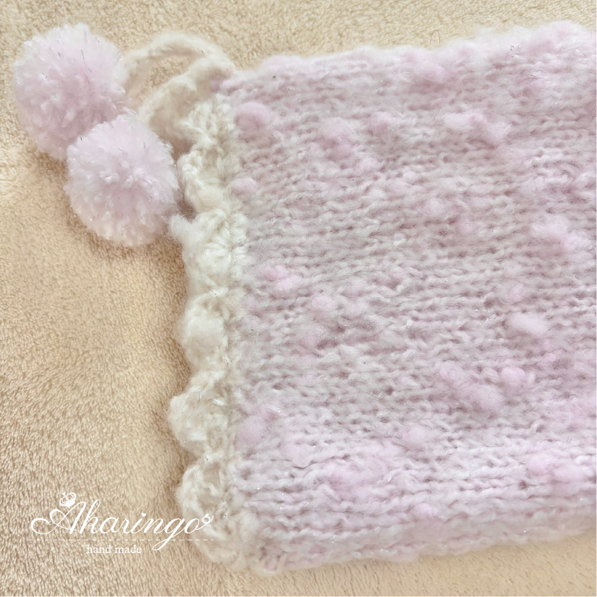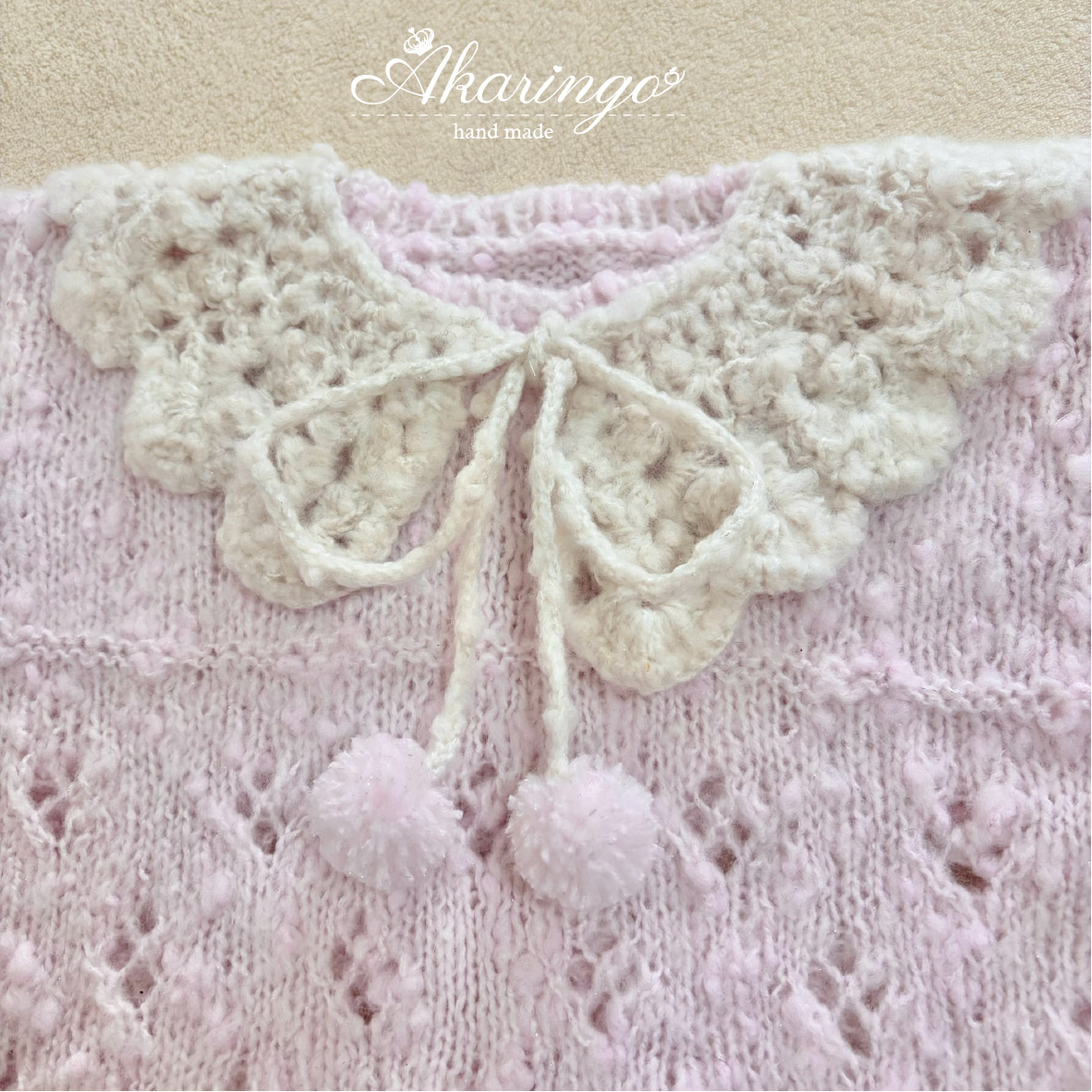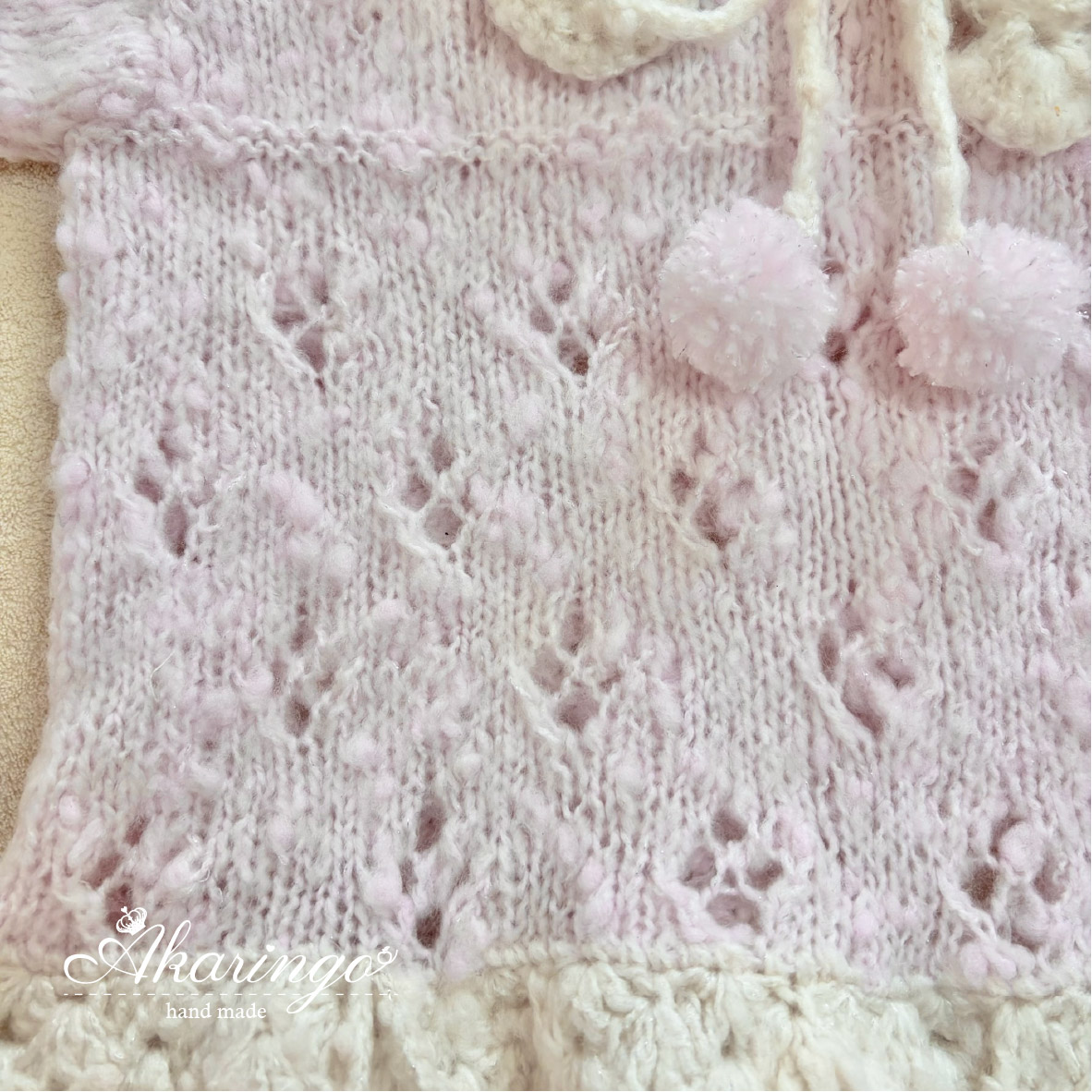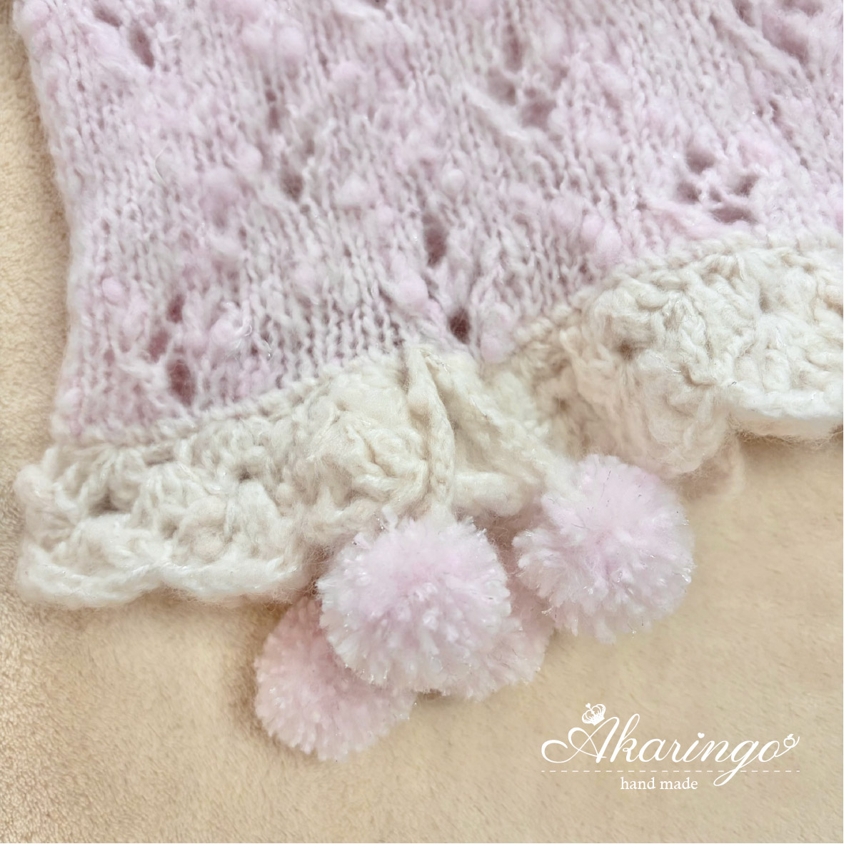 ファンシーヤーンを使用し、ふんわりやさしい可愛らしさに仕上げました♡