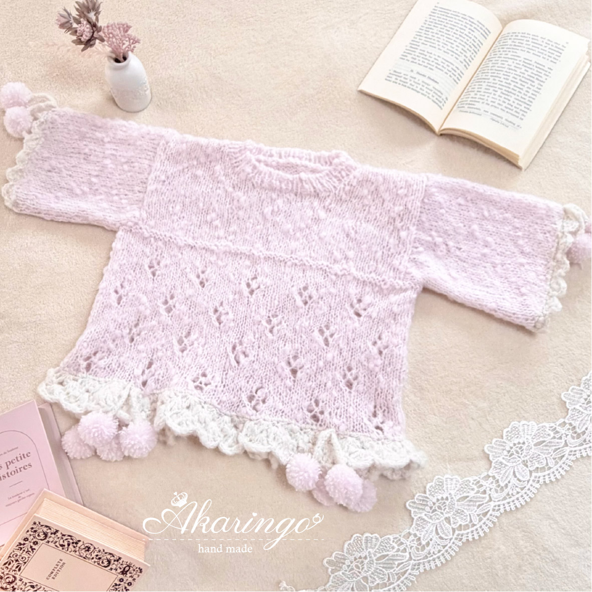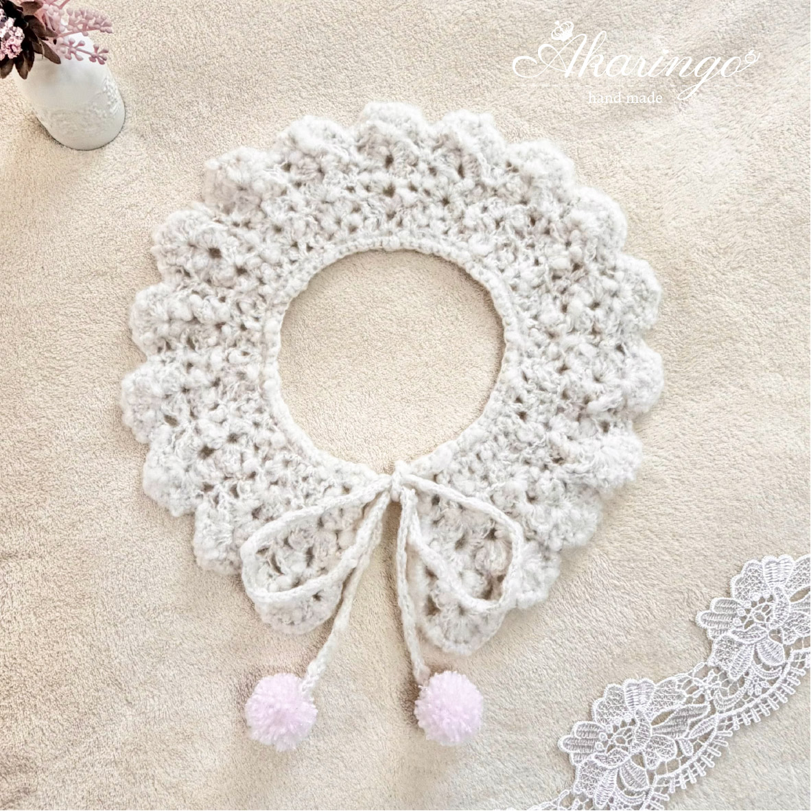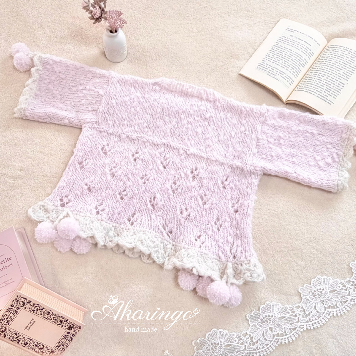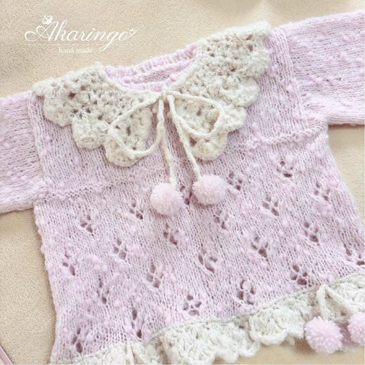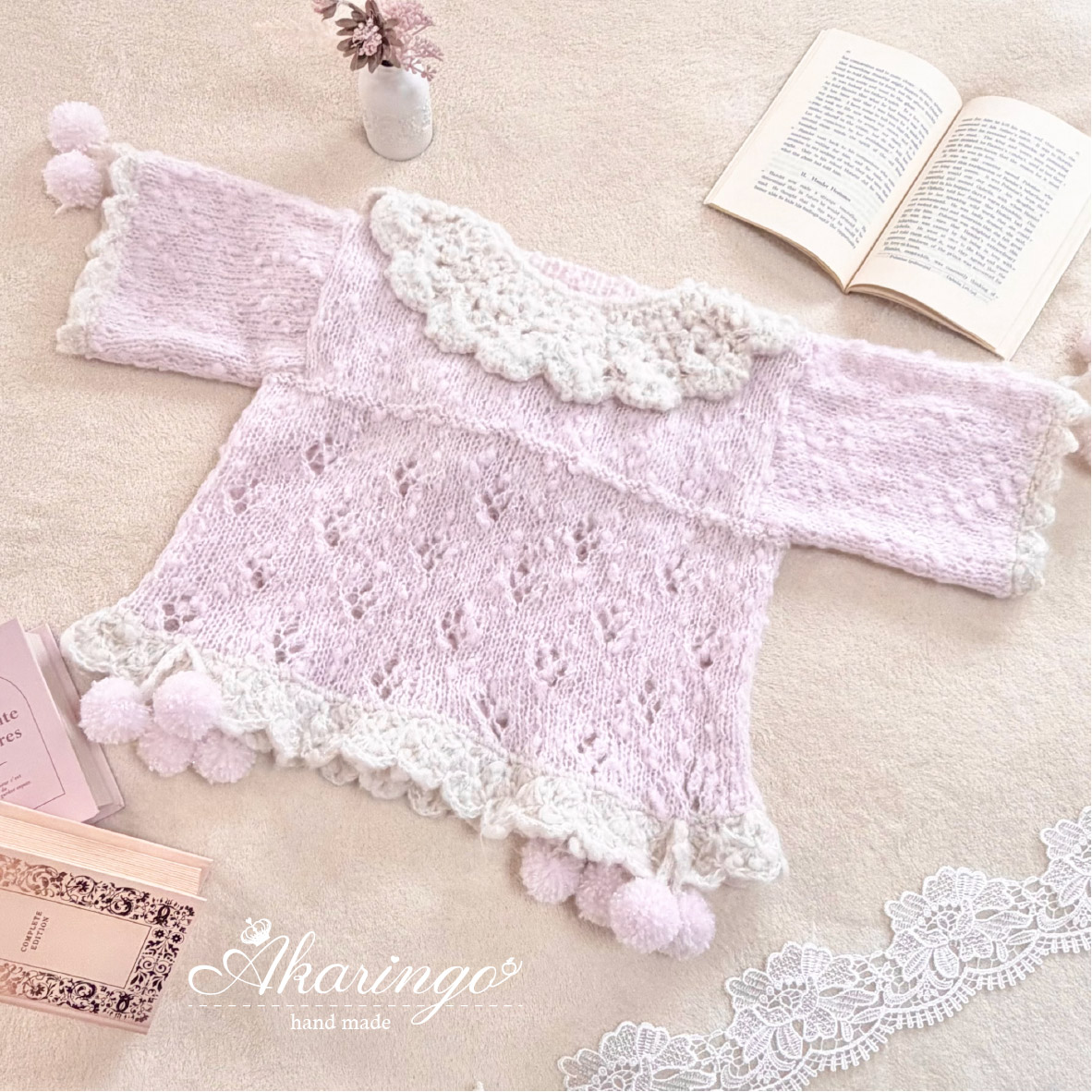 ファンシーヤーンを使用し、ふんわりやさしい可愛らしさに仕上げました♡