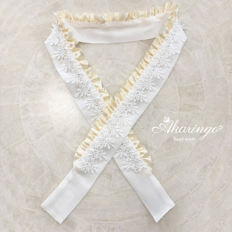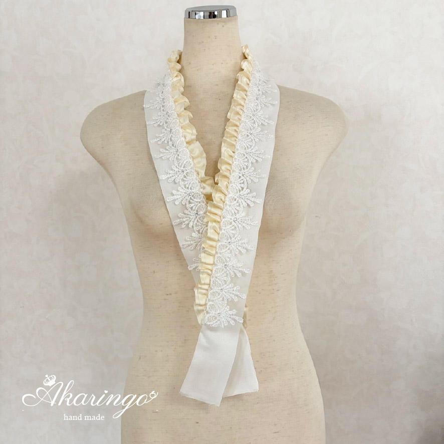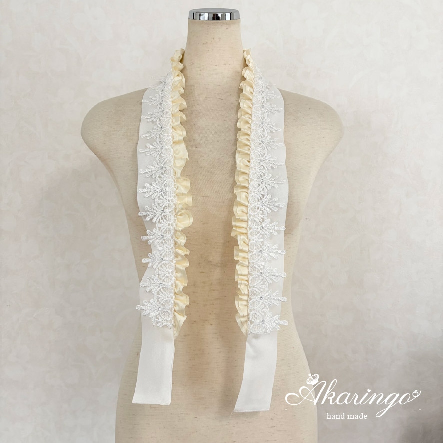 3way 伊達衿 オフホワイト 2重フリル レースを挟み込むタイプの伊達襟 白(受注制作 / 受注生産)