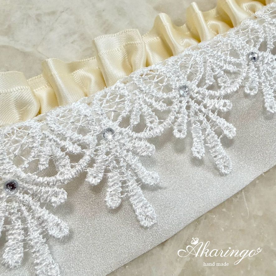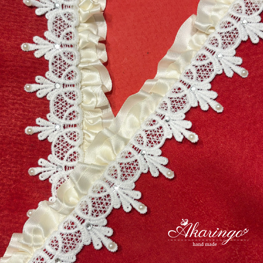ケミカルレースにキラリと光るクリアストーンとフェイクパールを点々と取り付け、より華やかにしました。