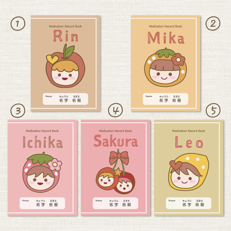 フルーツ お薬手帳カバー お名前入れます♪ A6サイズ オリジナルイラスト・デザイン