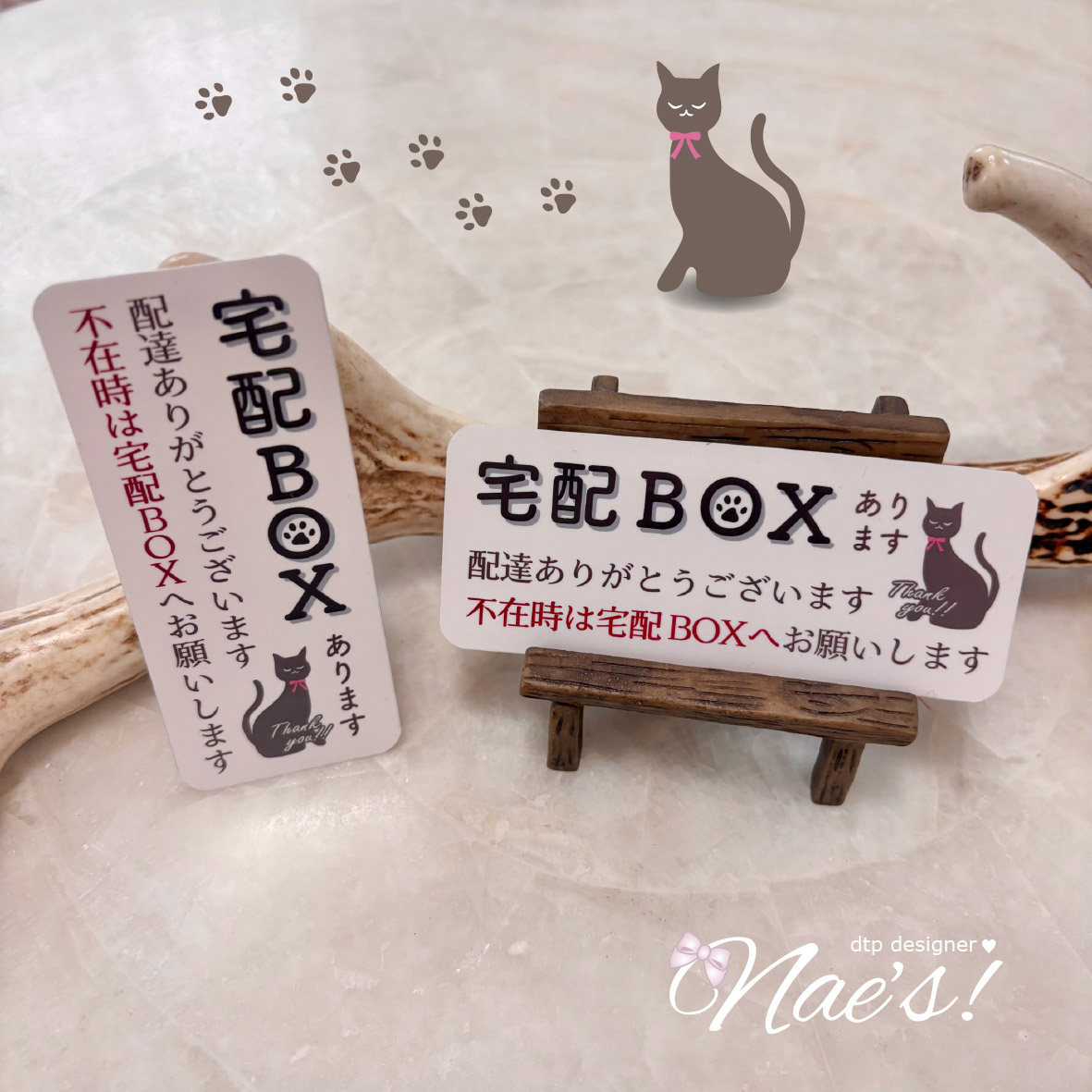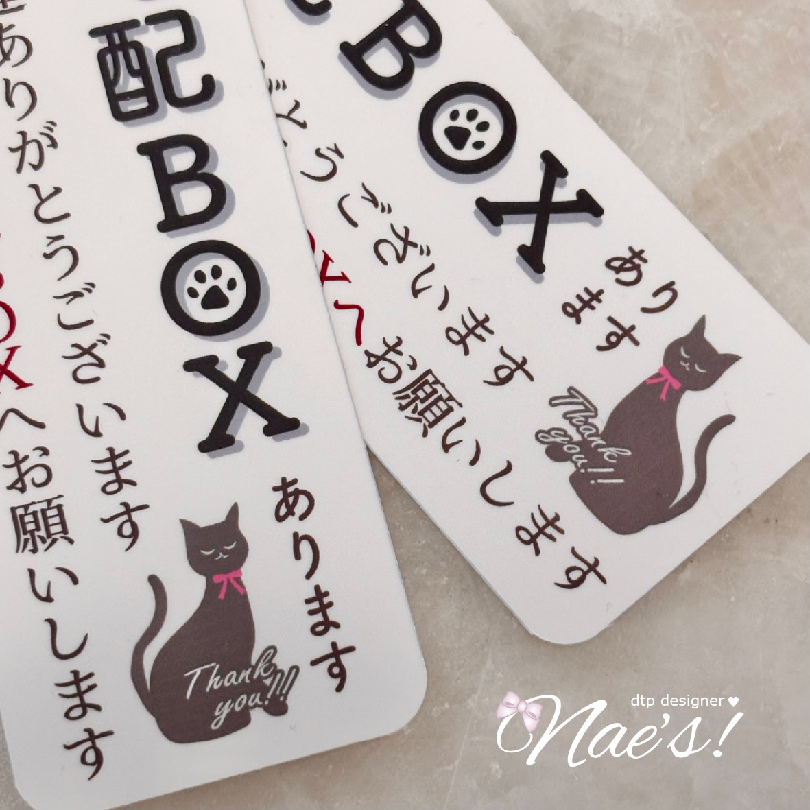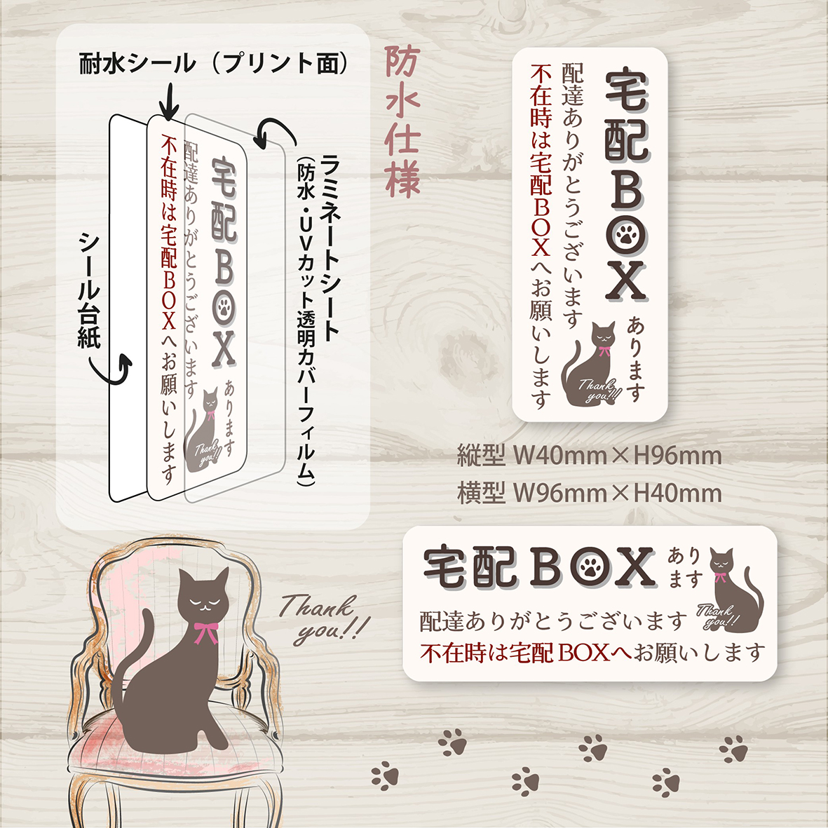 猫「宅配ボックス案内ステッカー」シール 縦型 横型(40×96mm)