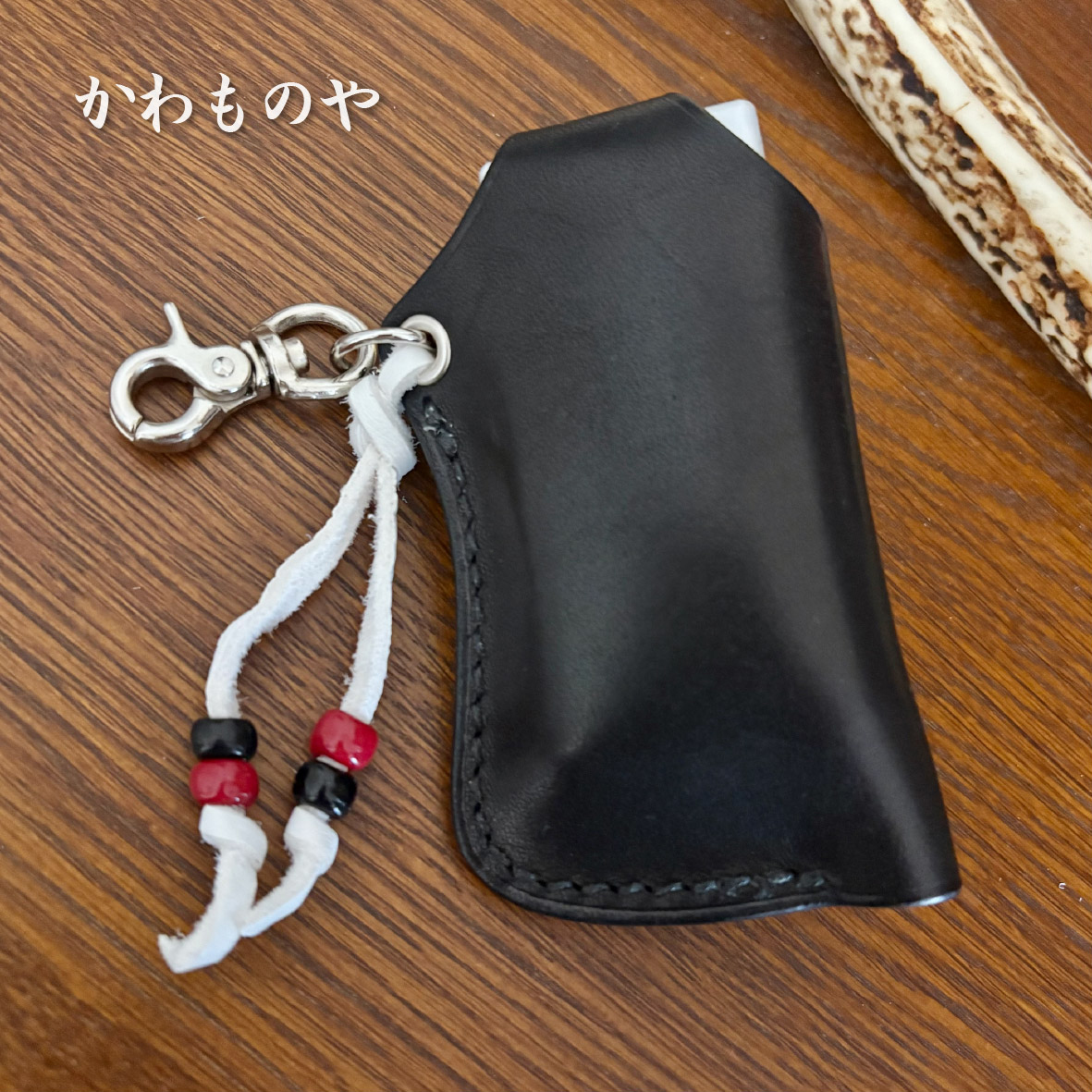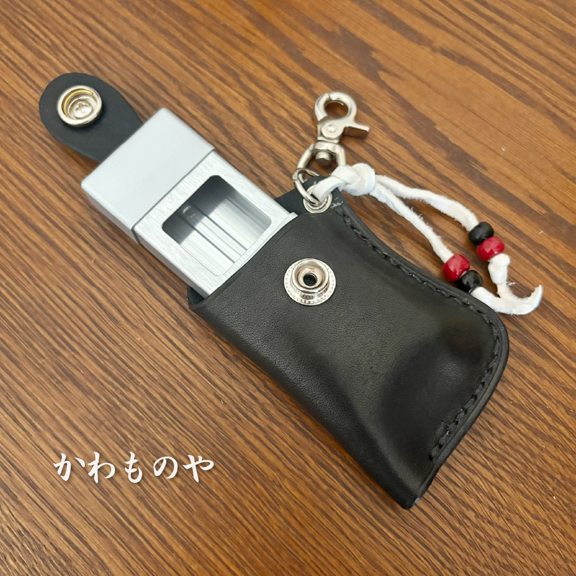 本革 携帯灰皿 (牛革 ヌメ革)ブラック 黒 レザー ピルケース 小物入れ 手縫い