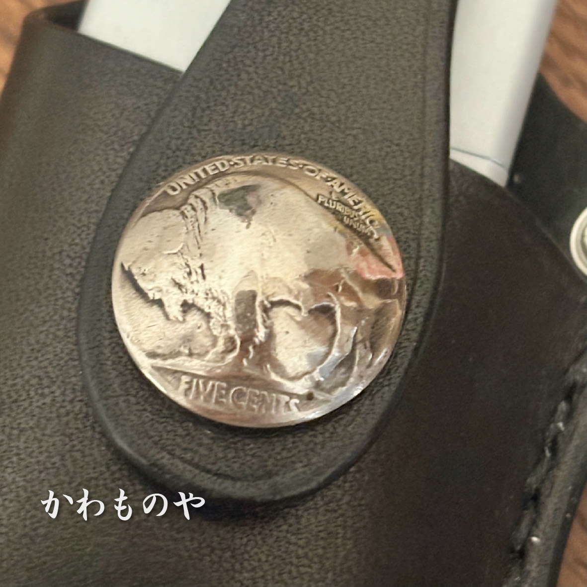 コンチョ(ボタン)は、アメリカの昔(1913~38年)の5セントコインを加工したものです。