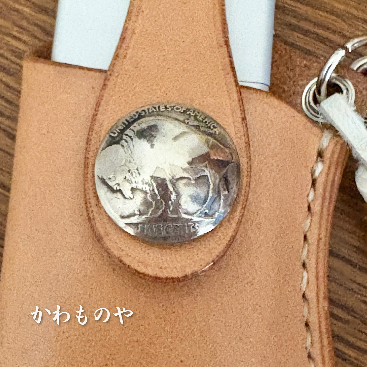 コンチョ(ボタン)は、アメリカの昔(1913~38年)の5セントコインを加工したものです。