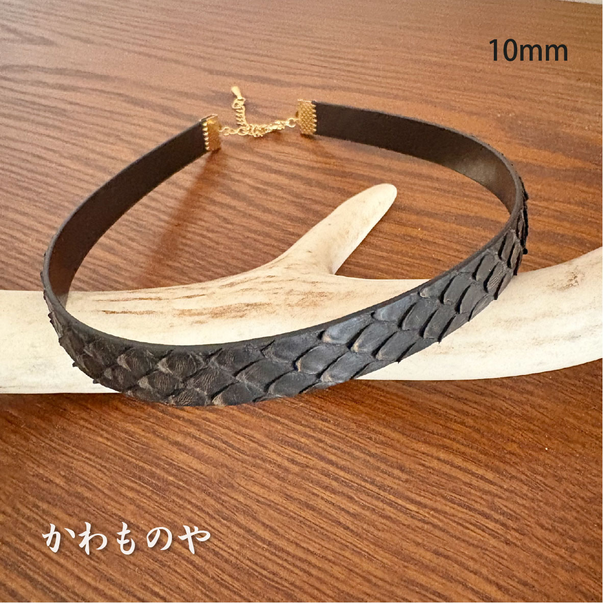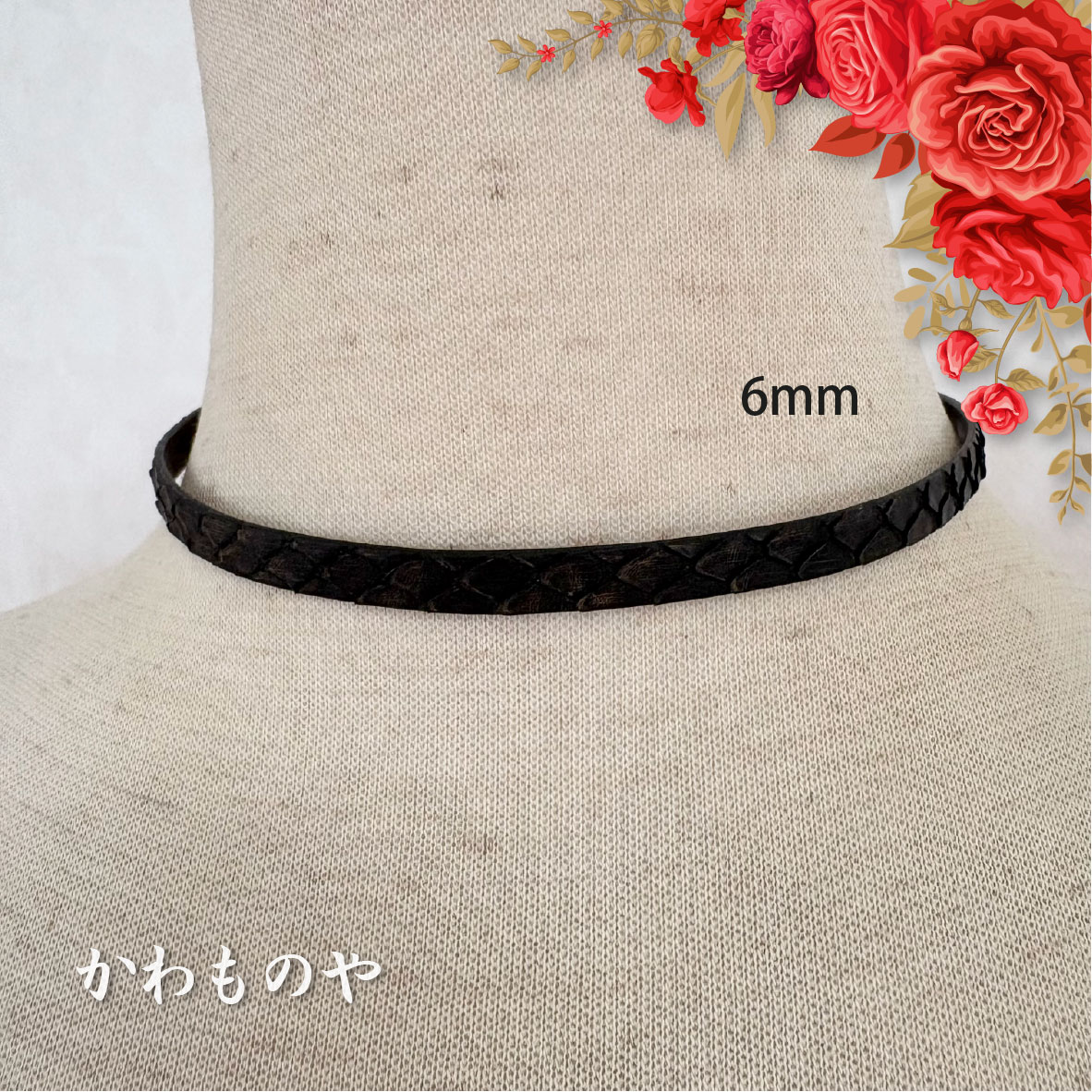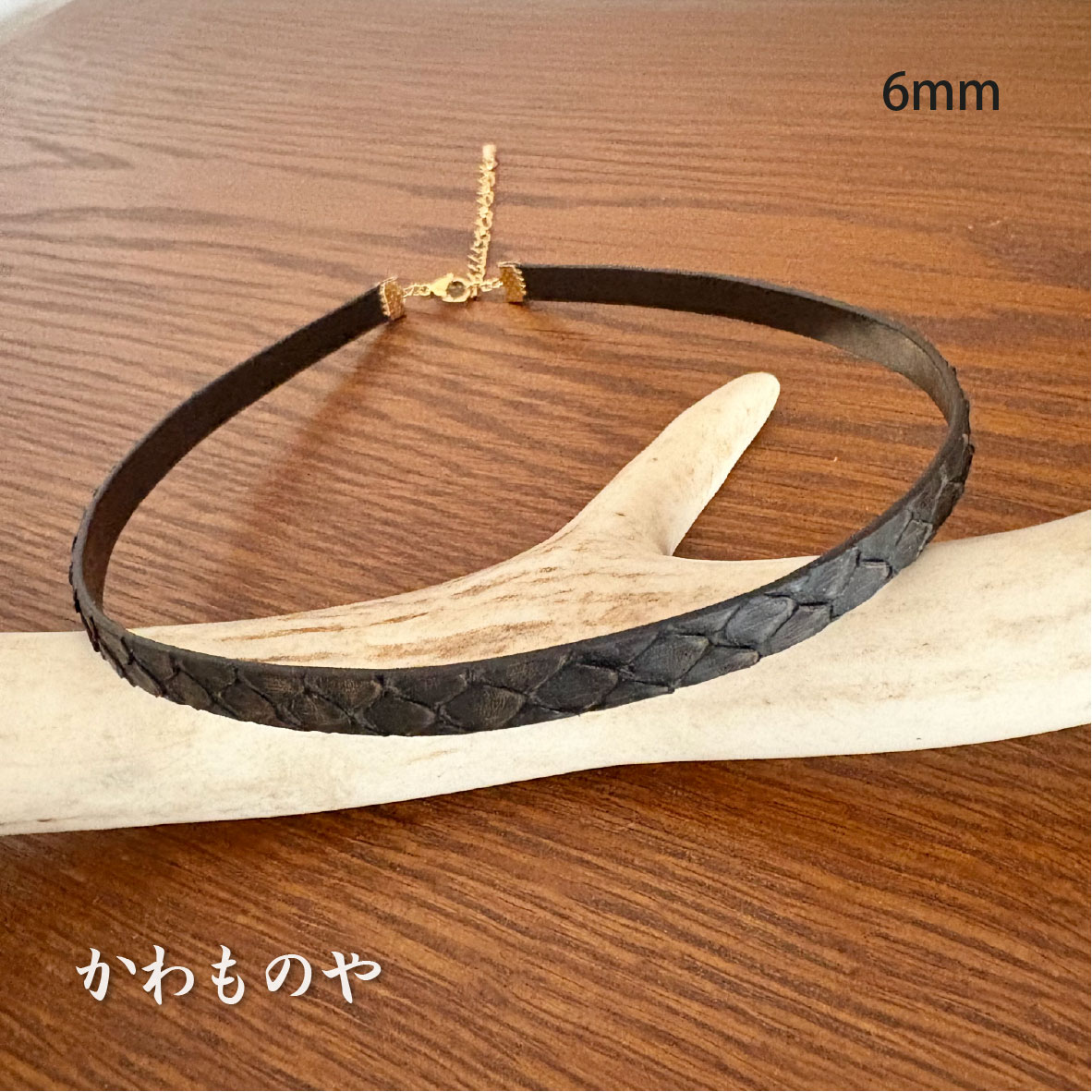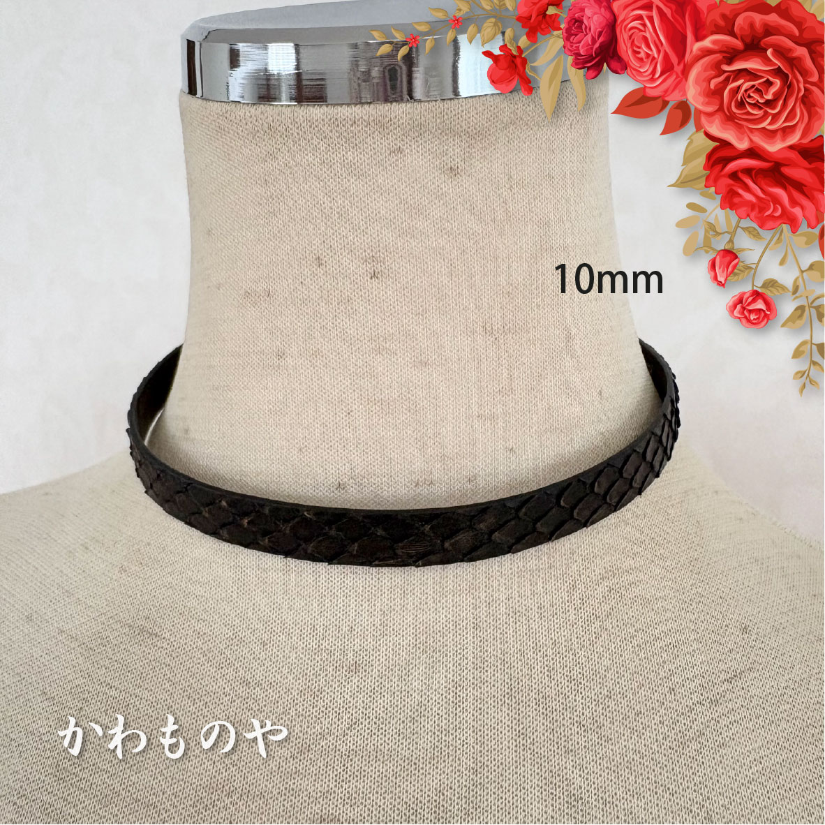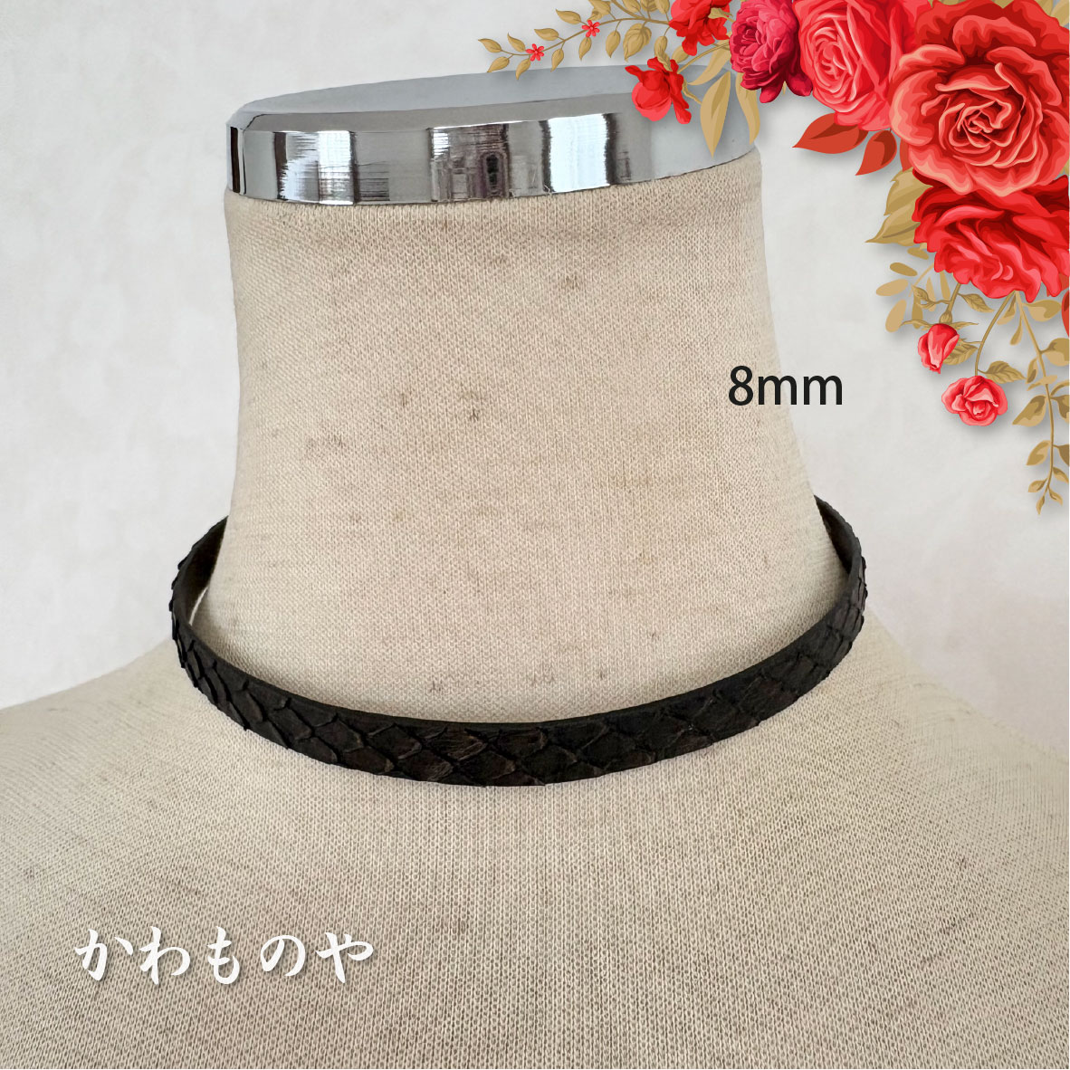 本革 パイソン(蛇革)レザーチョーカー ダークブラウン 焦茶色 ネックレス サージカルステンレス使用(太さ3種類)6mm 8mm 10mm