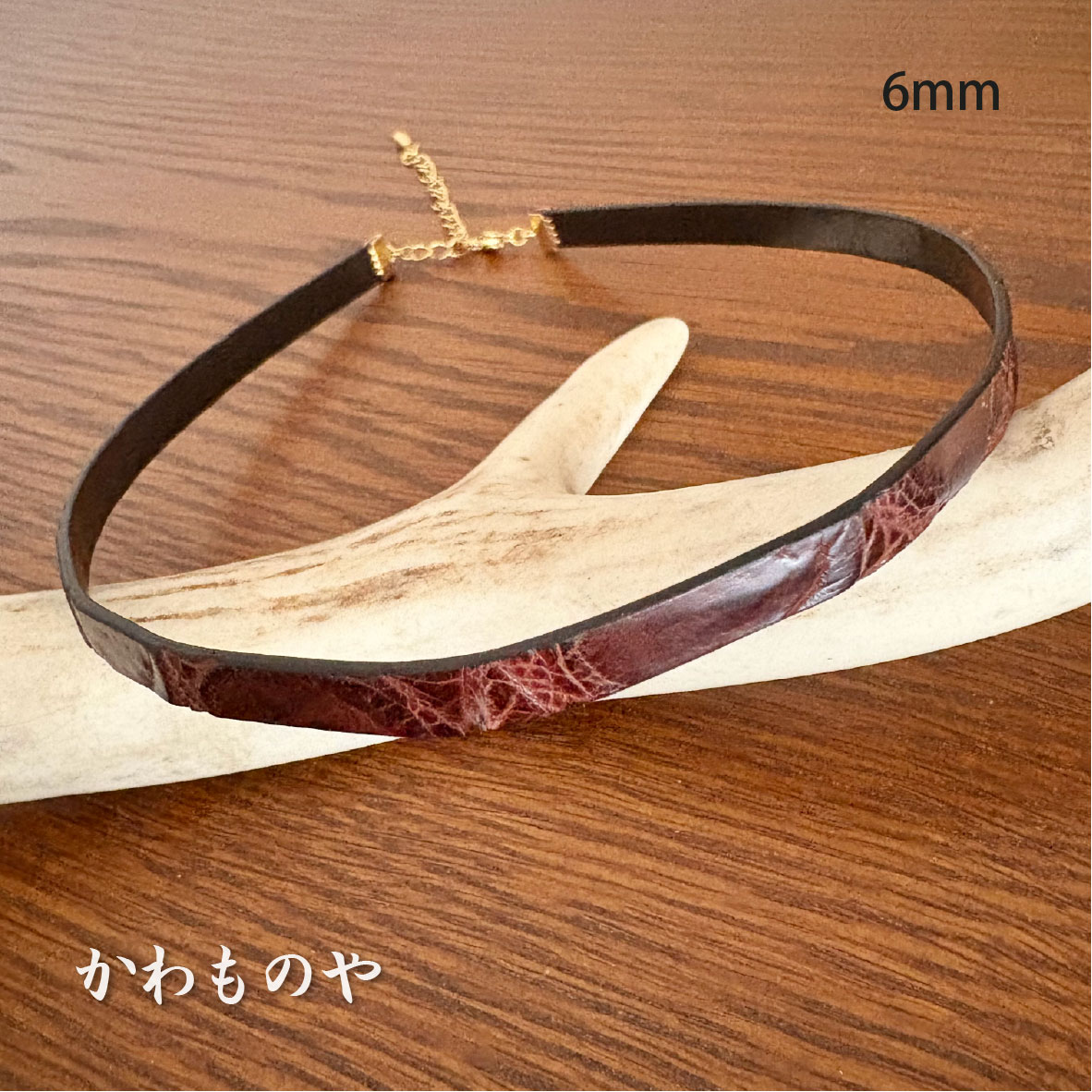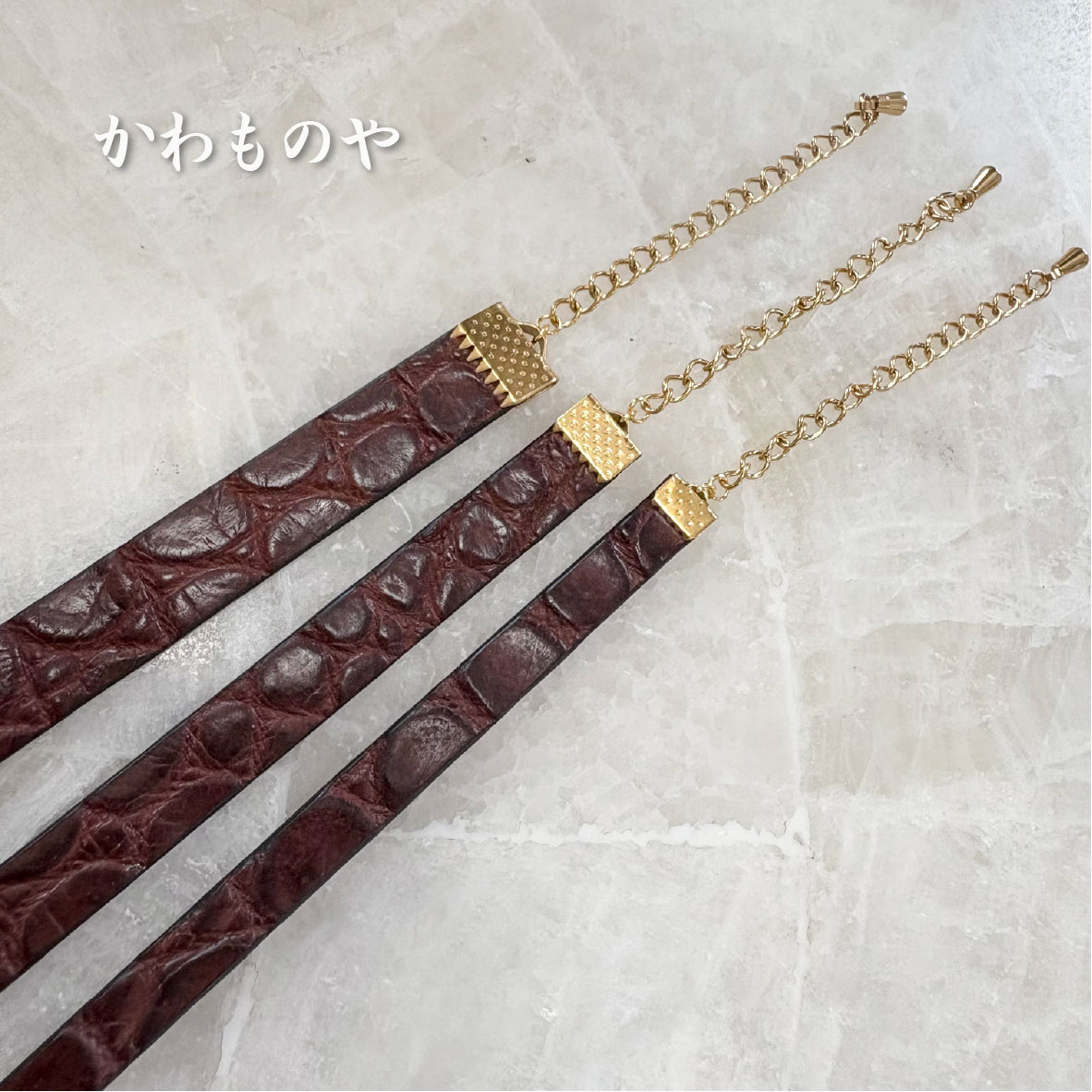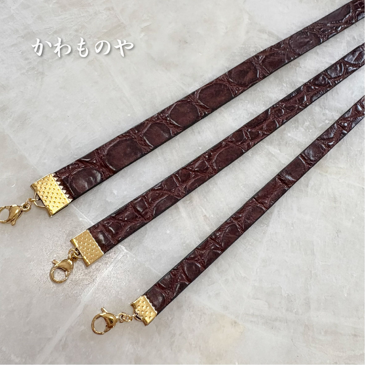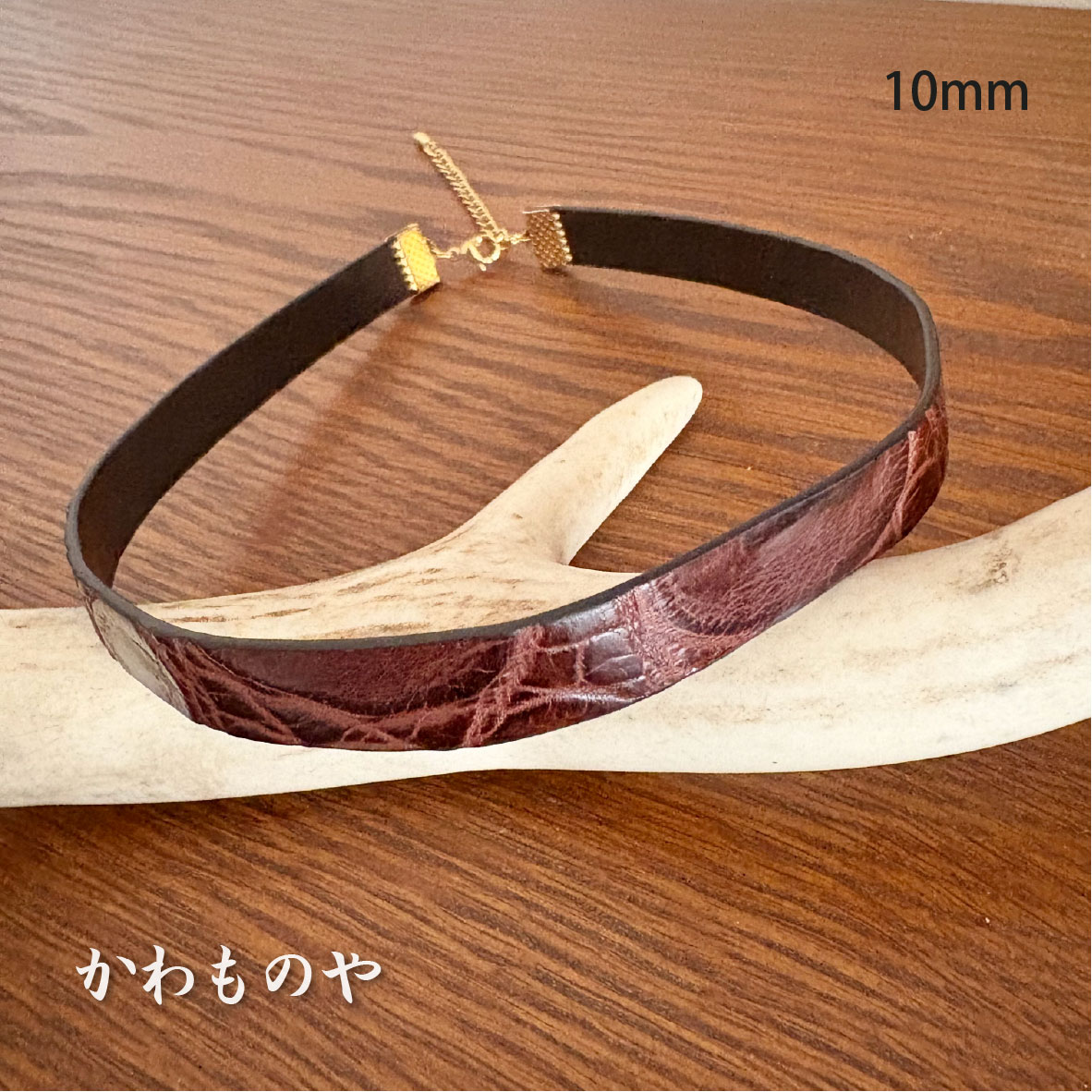 本革 クロコダイル(鰐革)レザーチョーカー 茶色 ネックレス サージカルステンレス使用(太さ3種類)6mm 8mm 10