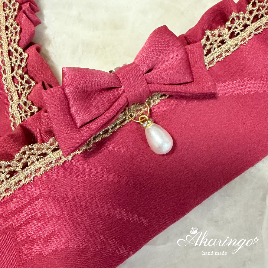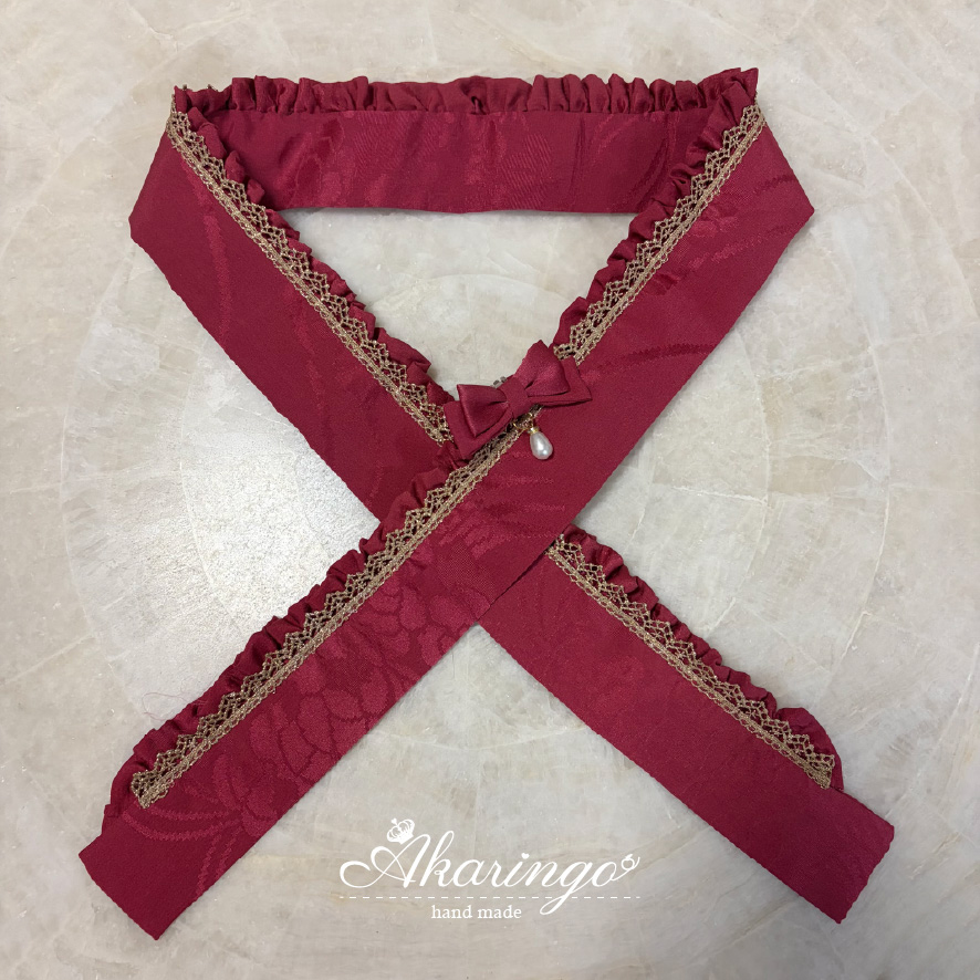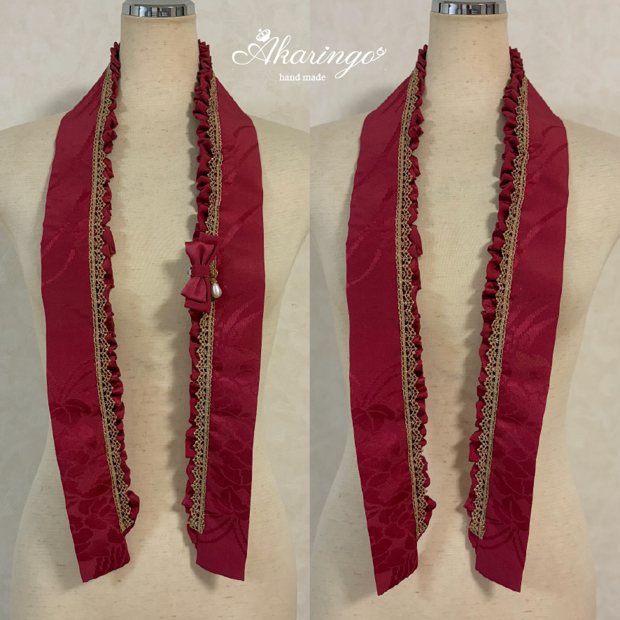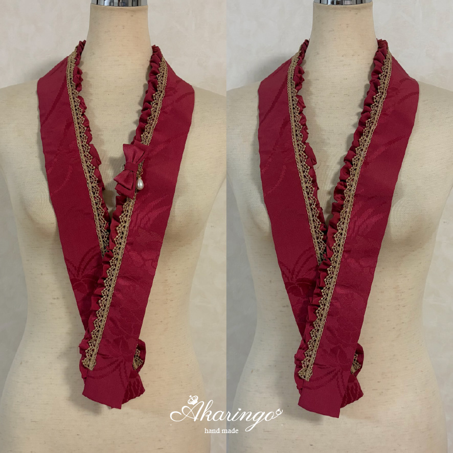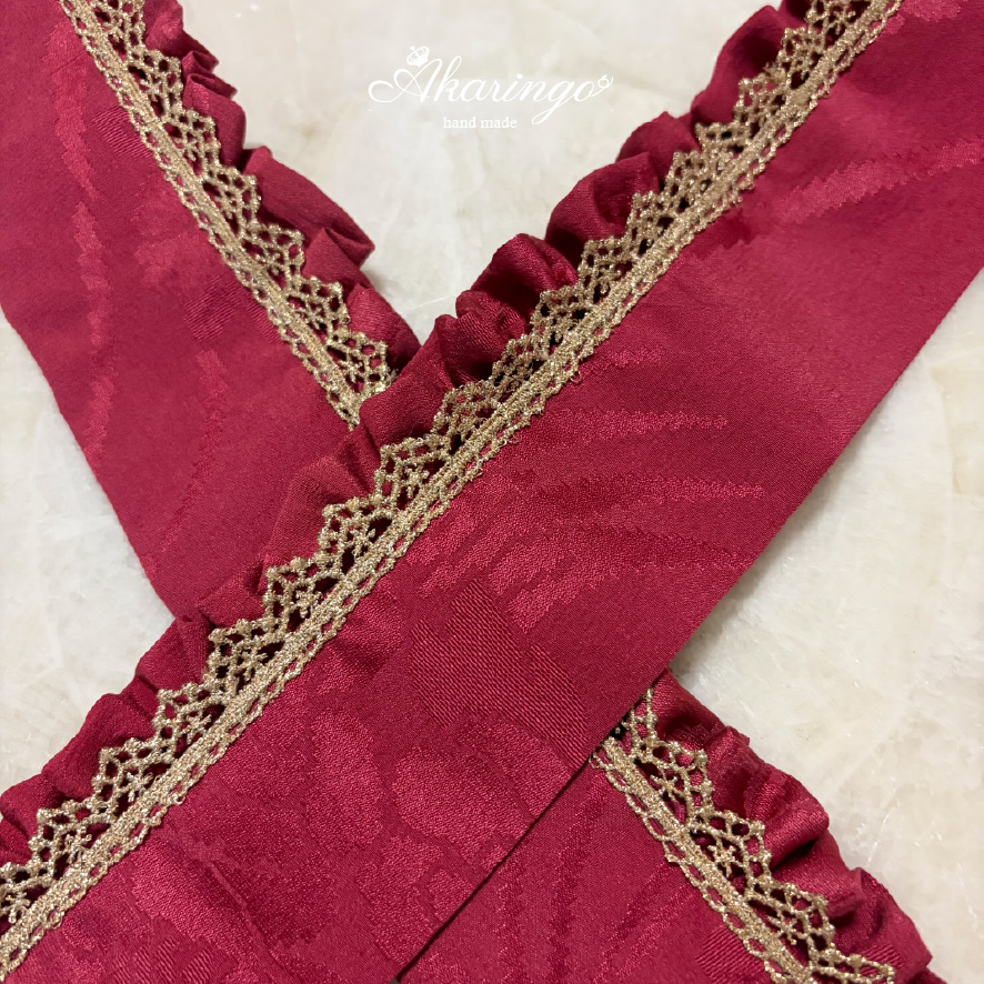 伊達衿 赤×金 フリル レース