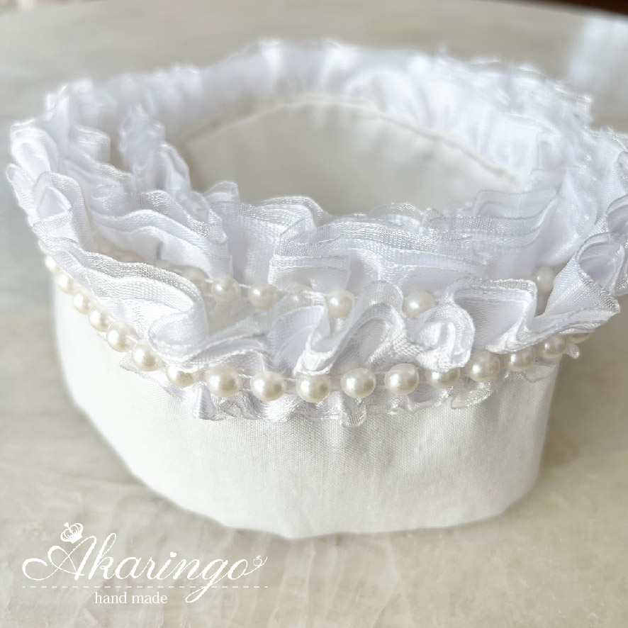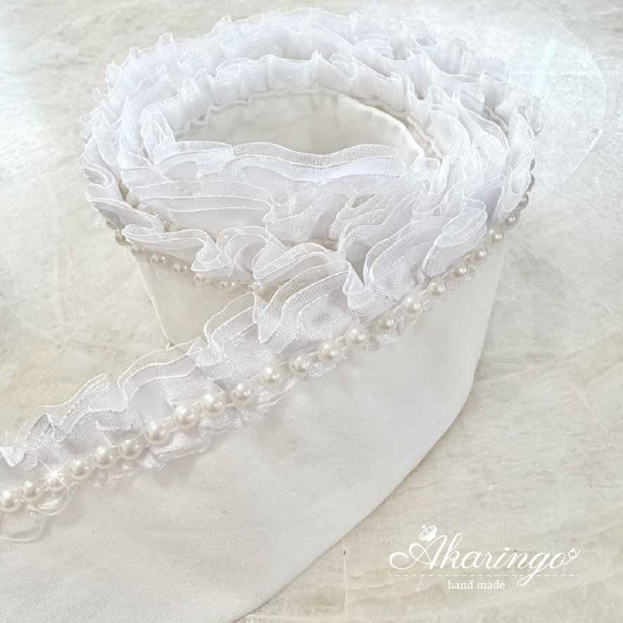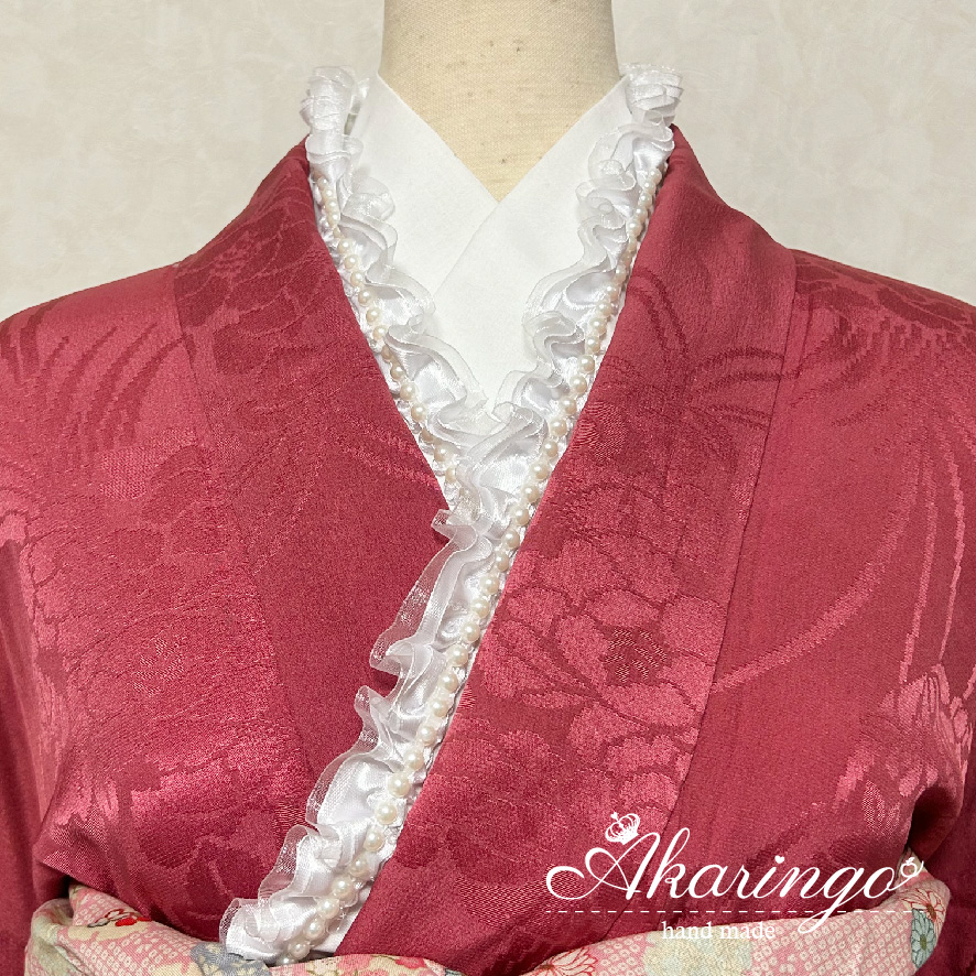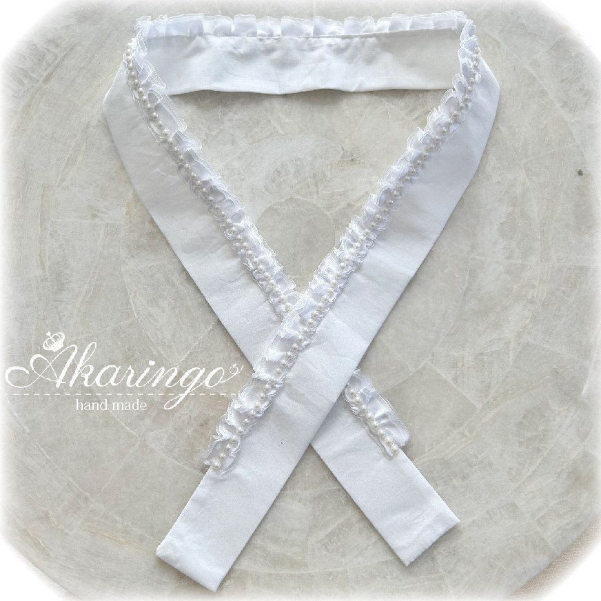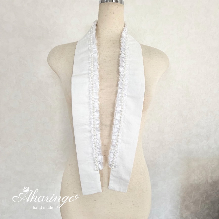 フェイクラインパールが付いたレースの伊達襟/重ね襟