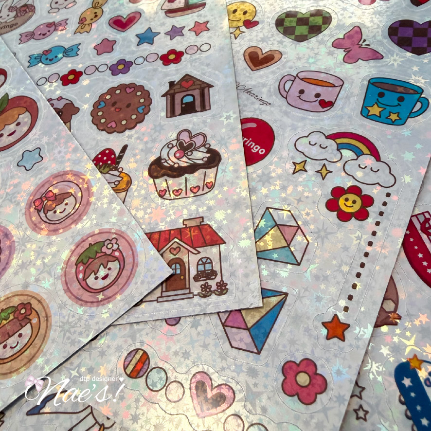 銀色のキラキラホログラムシートにめいっぱい詰め込みました。