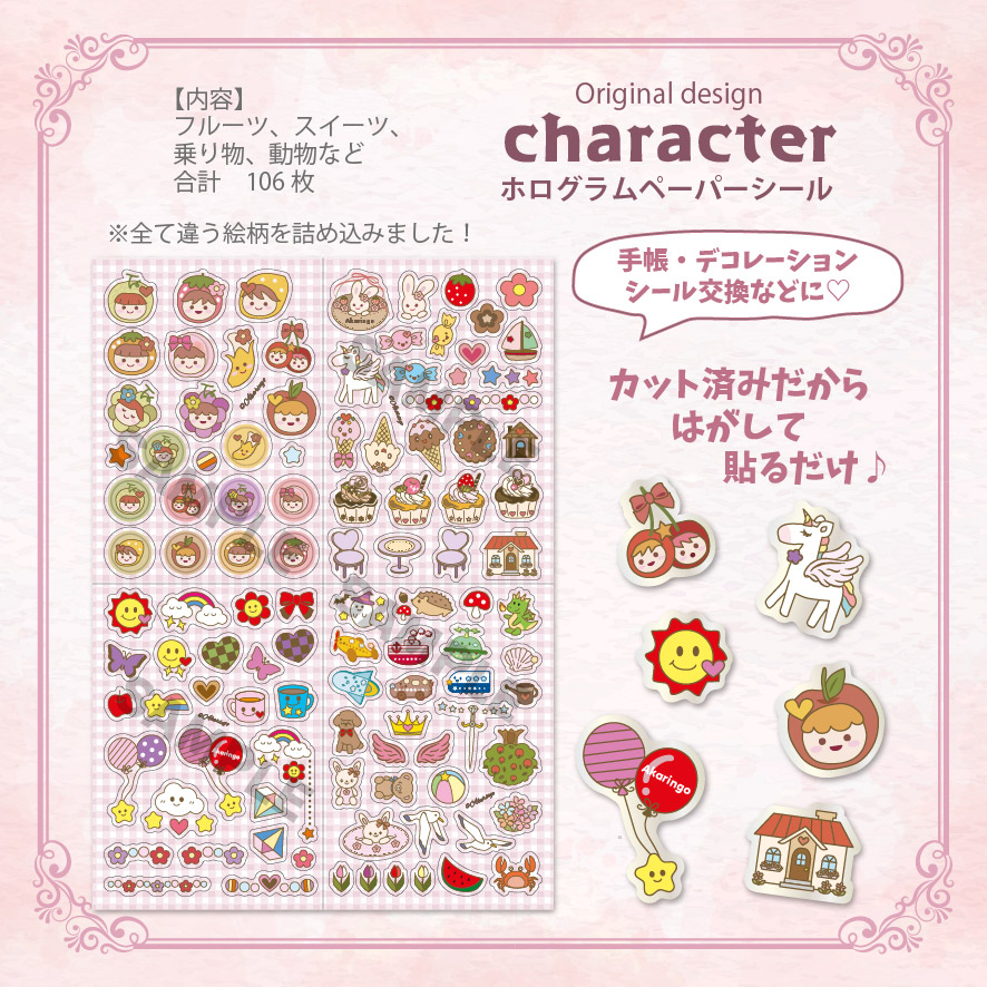 カット済み オリジナルキャラクター ホログラムシール(106ピース)デコレーションやシール交換などに!