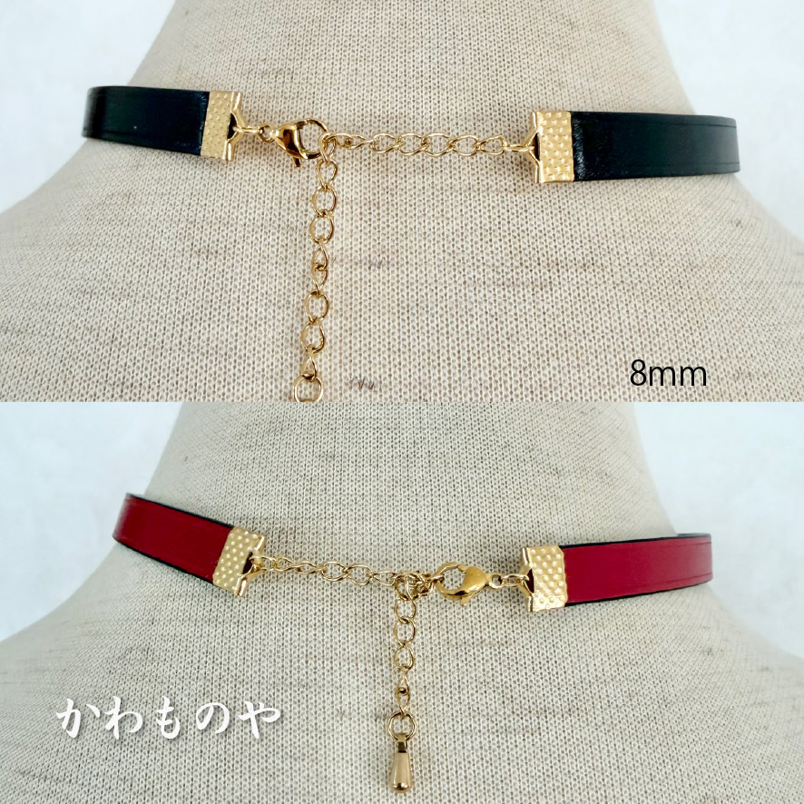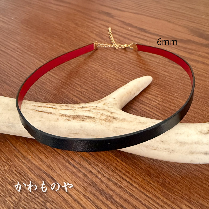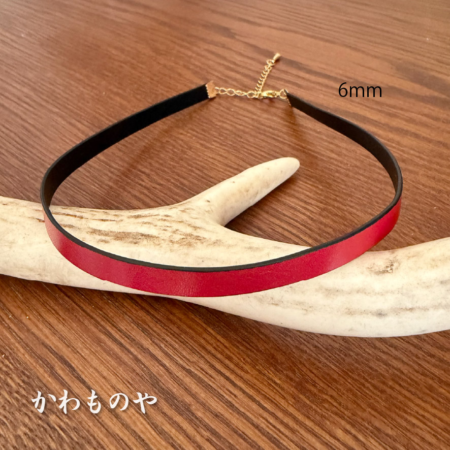 本革 牛革 レザーチョーカー リバーシブル(黒×赤)ネックレス サージカルステンレス使用(太さ3種類)6mm 8mm 10mm